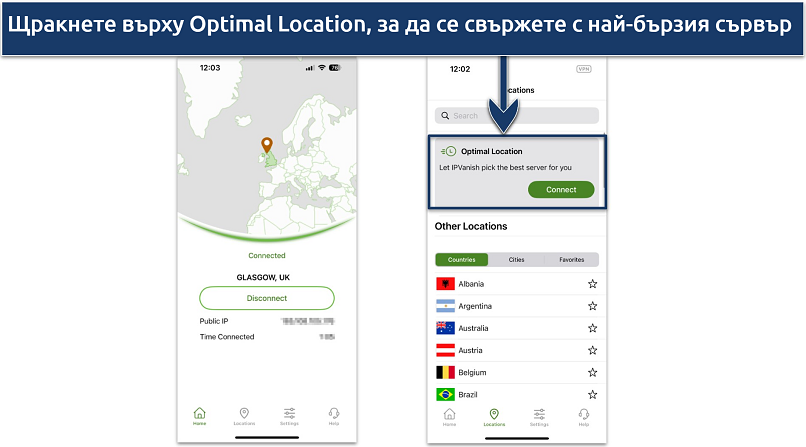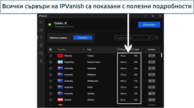- Свържете се. Изберете сървър — тези, които са най-близо до вас, би трябвало да са най-бързи.