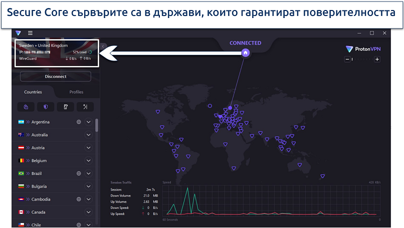Това подобрява вашата поверителност онлайн и защитава връзката ви срещу заплахи като подслушване, хакерски атаки и други кибератаки.