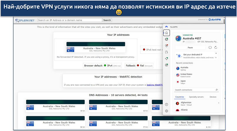 Препоръчваме да използвате инструмент за тестване за изтичане на данни, за да проверите дали вашият IP адрес е променен успешно. Всичко, което трябва да направите, е да посетите един от многото налични сайтове за проверка на IP адреси. Те автоматично ще открият кой IP адрес показва вашето устройство в момента. Ако VPN услугата си е свършила работата, истинското ви местоположение ще бъде скрито и сайтовете, които посещавате, ще виждат само IP адреса на VPN сървъра. Ако даден IP адрес изтича, стрийминг услуги като BBC iPlayer и ITVX ще разберат, че не използвате IP адрес от Обединеното кралство и ще блокират достъпа, дори ако използвате VPN от съображения за сигурност.
