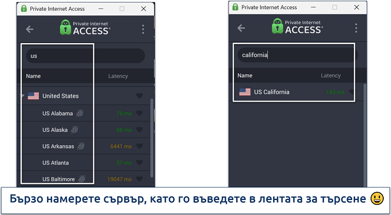 След като VPN услугата е инсталирана, трябва да намерите сървъра, който търсите. Най-добрите VPN услуги имат интуитивен интерфейс с голяма карта или списък със сървъри, които виждате веднага след като влезете. Изборът на правилната държава е от решаващо значение за безопасен достъп до необходимите услуги. Например, Paramount+ е достъпен предимно в САЩ, така че е необходим американски IP адрес за сигурен достъп до него.